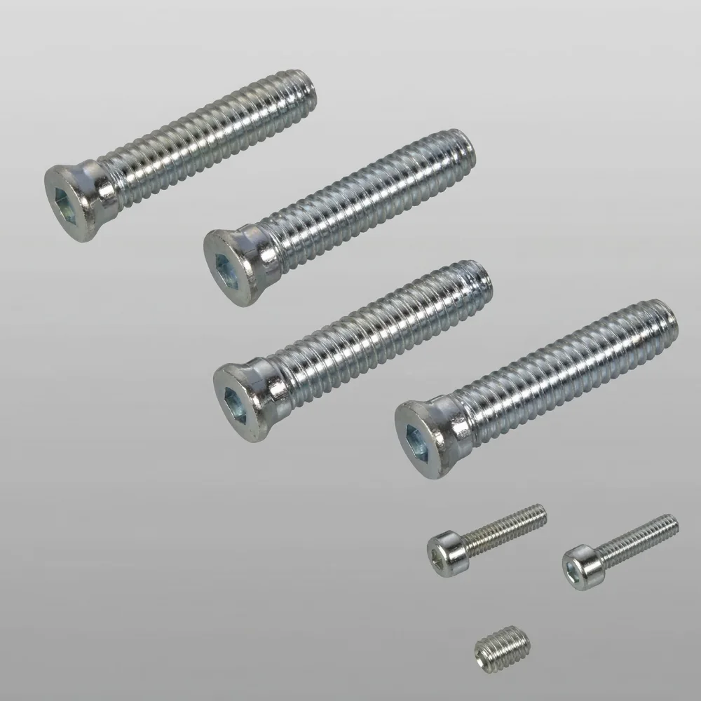 Díky samořeznému profilu se šrouby pevně zařezávají do stěn komor hliníkového profilu a poskytují stabilní oporu pro běžný provoz. Sada obsahuje také miniaturní zajišťovací červíky, které jsou klíčové pro finální uzamčení 3D seřizovacího mechanismu uvnitř pantu, aby se zamezilo jeho rozštelování během používání.
