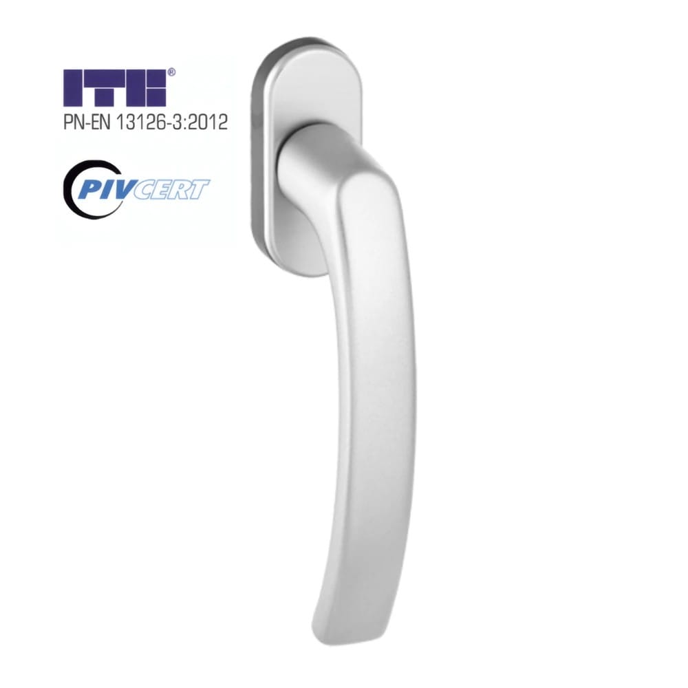 Spolehlivost tohoto modelu není jen slibem, ale podloženým faktem. Tato stříbrná okenní klika úspěšně prošla náročnými testy a je držitelem certifikátu od uznávaného německého zkušebního institutu PIV CERT. Zároveň splňuje přísné požadavky evropské harmonizované normy PN-EN 13126-3:2012 pro stavební kování. To v praxi znamená, že produkt byl laboratorně testován na tisíce cyklů otevření a zavření, pevnost v tahu a celkovou mechanickou stabilitu.