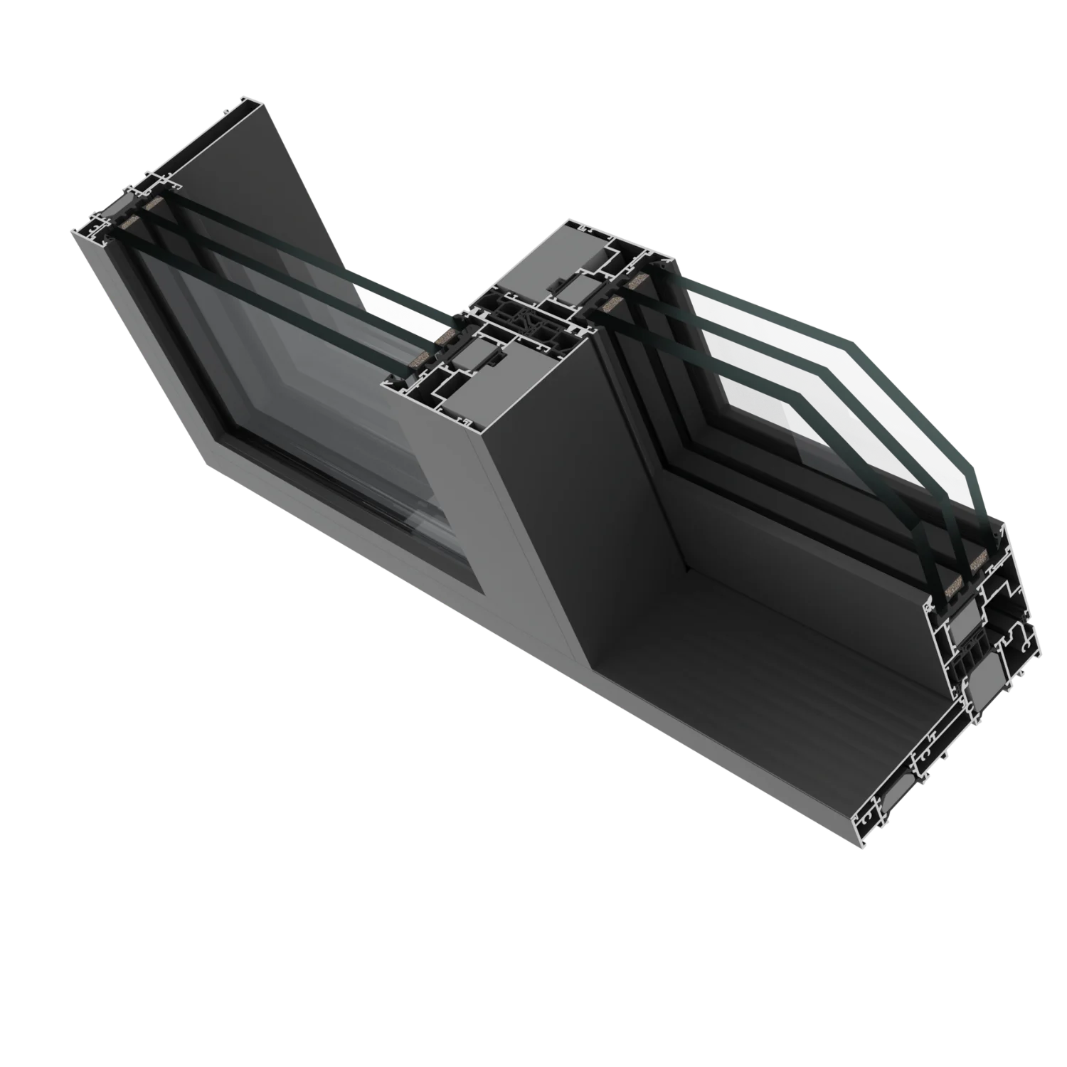 Systém využívá nový typ profilu pro fixní zasklení, který nevyžaduje šroubování k rámu, což zvyšuje estetikou čistotu.